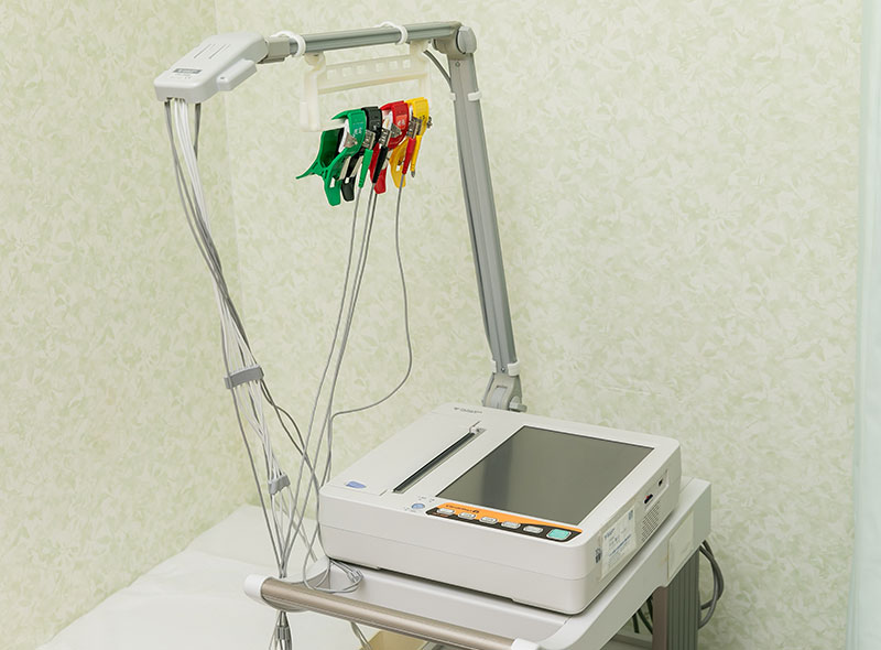 心電図は心臓の電気活動を測定し、リズムや異常を評価します。撮影は痛みなく数分で完了します。