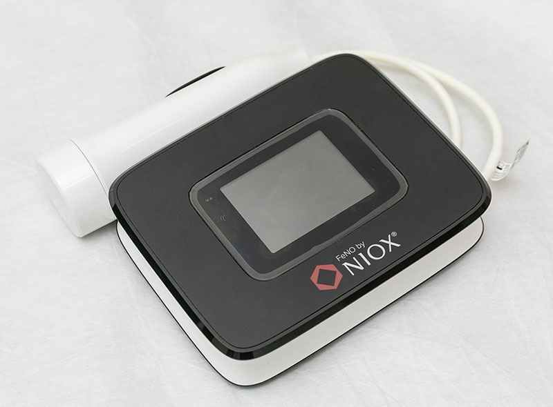 NO(一酸化窒素濃度)を測定し喘息の診断をします。