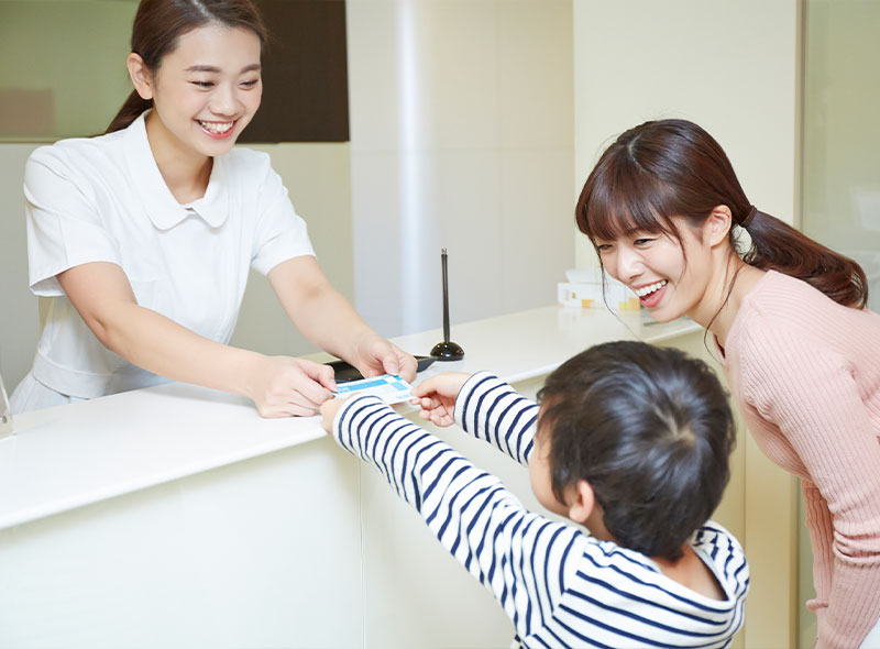 ご来院されましたら、まずは受付窓口にて資格確認書、またはマイナンバーカードをご提示ください。各種公費受給者証をお持ちの方は、併せてご提出をお願いします。